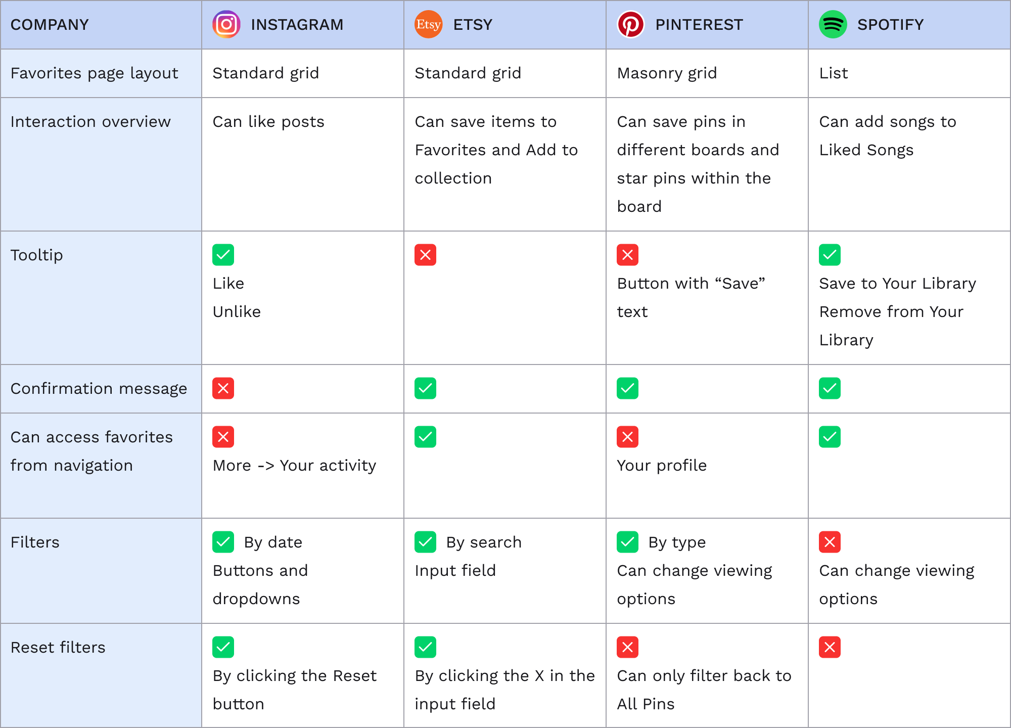 For the competitive analysis, I examined popular websites across social media, e-commerce, and music listening domains, focusing on functionality, visual design, and accessibility.
